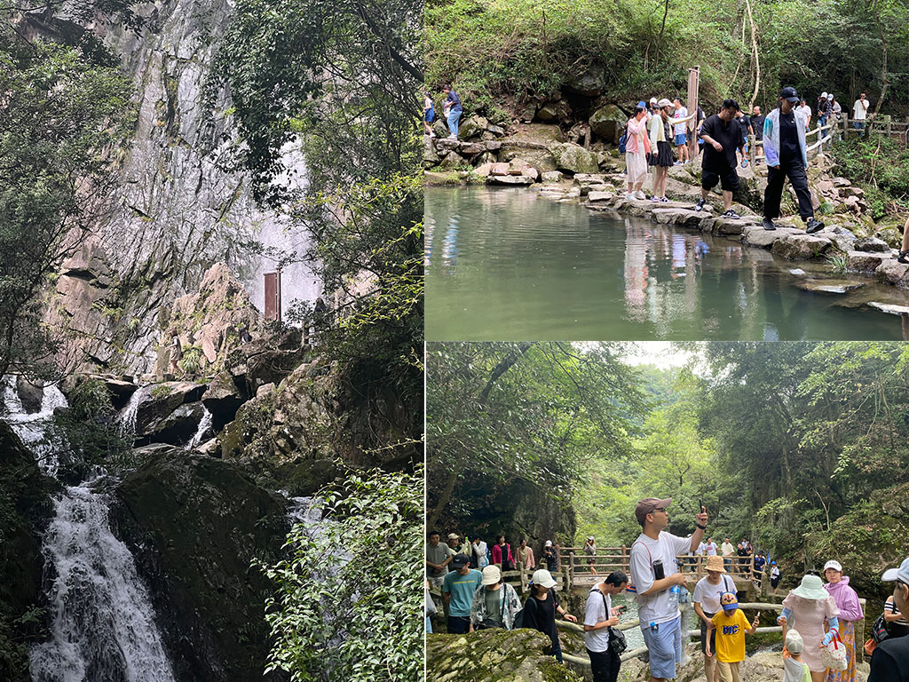 集體徒步觀光小而美的嵊州百丈瀑布在越劇小鎮
